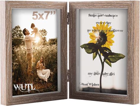 5X7 Picture Frames Double Hinged MDF Wood Grain Shadow Box With Glass Front Stand Vertical On Tabletop