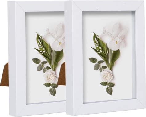 Muzilife 5X7 Shadow Box Frame 2-Pack Wood 3D Picture Frame With Glass Cover Display Case For Wall-Hanging Or Free-Standing Picture Showcase, White