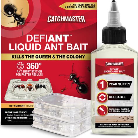 Catchmaster DEFIANT Premium Liquid Ant Killer, 1-Year Supply, Kills The Queen And Colony, No Mess Precision Bottle, Reusable Ant Traps Indoor &