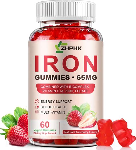 ZHPHK Iron Supplement Gummies, 65Mg Iron For Women Men Kids, Natural Vegan Iron Gummy With Folate Gentle On Stomach, Gluten Free, Energy Support &