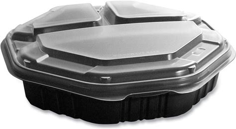 SOLO Octaview Hinged-Lid Hot Food Containers, 3-Compartment, 38 Oz, 9.55 X 9.1 X 2.4, Black/Clear, Plastic, 100/Carton - Mfr 809014-PP94