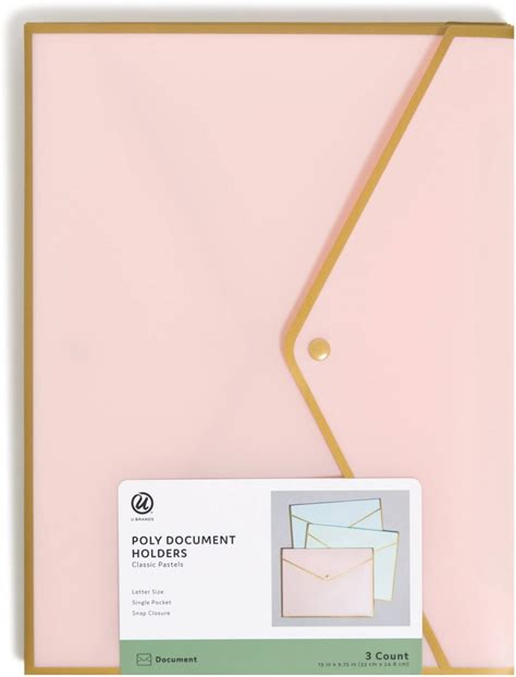 U Brands 3Ct Poly Document Holders With Snap Cover Pastels: Office Supplies File Organizer & Document Sorter