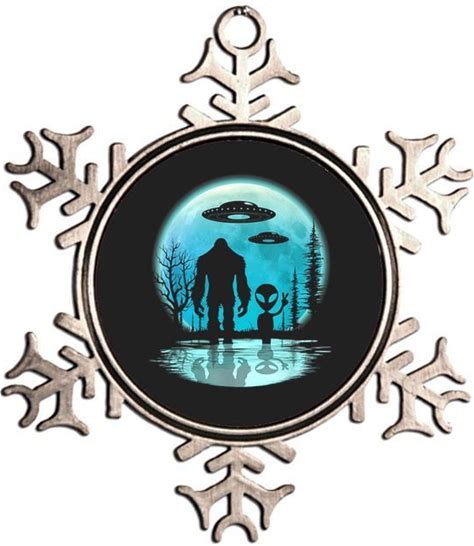 Bigfoot And Alien UFO Metallic Star Ornament