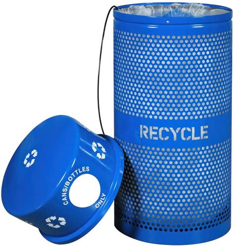 Ex-Cell Kaiser RC-34R DM CANS RBL Landscape Series 34 Gallon Blue Gloss Round Perforated Trash Receptacle With Dome Top
