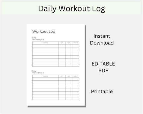 Workout Log Printable, Editable PDF, Fitness Planner, Exercise Template, Daily Workout Tracker, Resistance Training, Fitness Journal