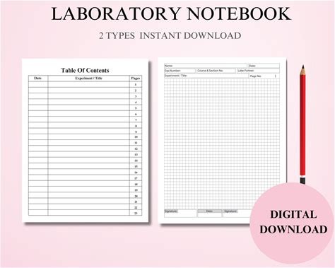 Printable Lab Notebook 120 Pages , Lab Book, Laboratory Notebook, Table Of Contents, PDF Instant Download